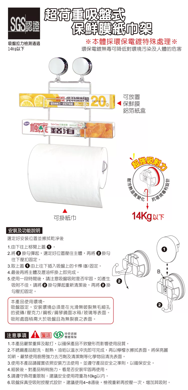 [雙手萬能]超荷重吸盤保鮮膜紙巾架