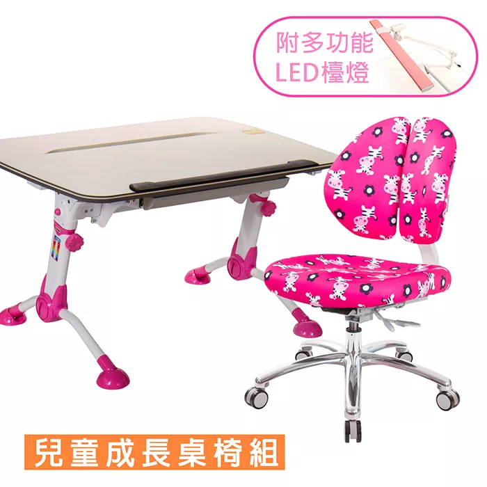 TW-3683BL 成長桌搭配 兒童雙背椅、LED防眩光護眼檯燈 【粉紅組合】
