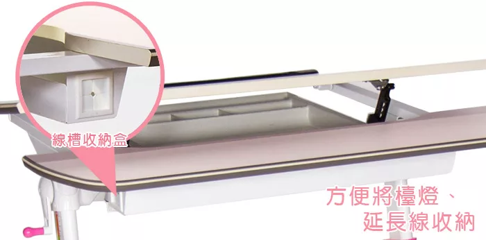 附加塑鋼材質抽屜,讓孩童可方便擺放文具用品,不再煩惱滿桌的文具用品,給孩子舒適整潔的讀書空間。
