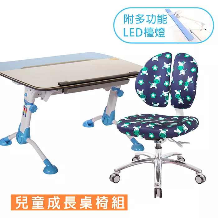 TW-3683BL 成長桌搭配 兒童雙背椅、LED防眩光護眼檯燈? 【藍色組合】