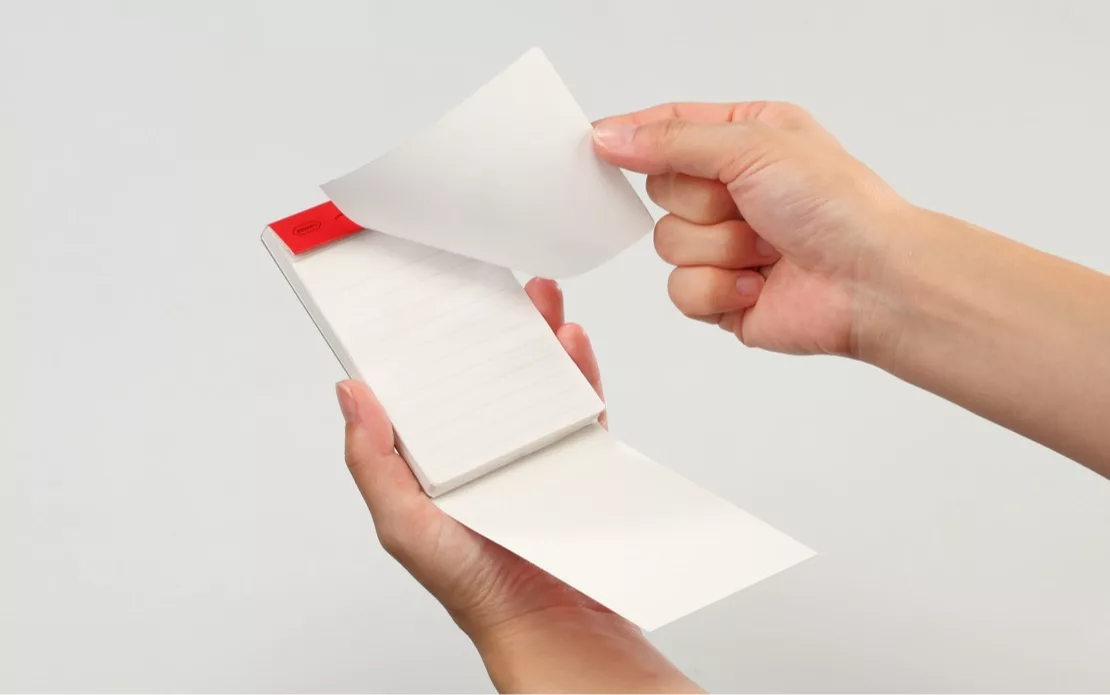ミシン目で切り離せばふせんになり、すぐに貼り付けられます。貼ってはがせる、ありそうでなかったメモパッドです。