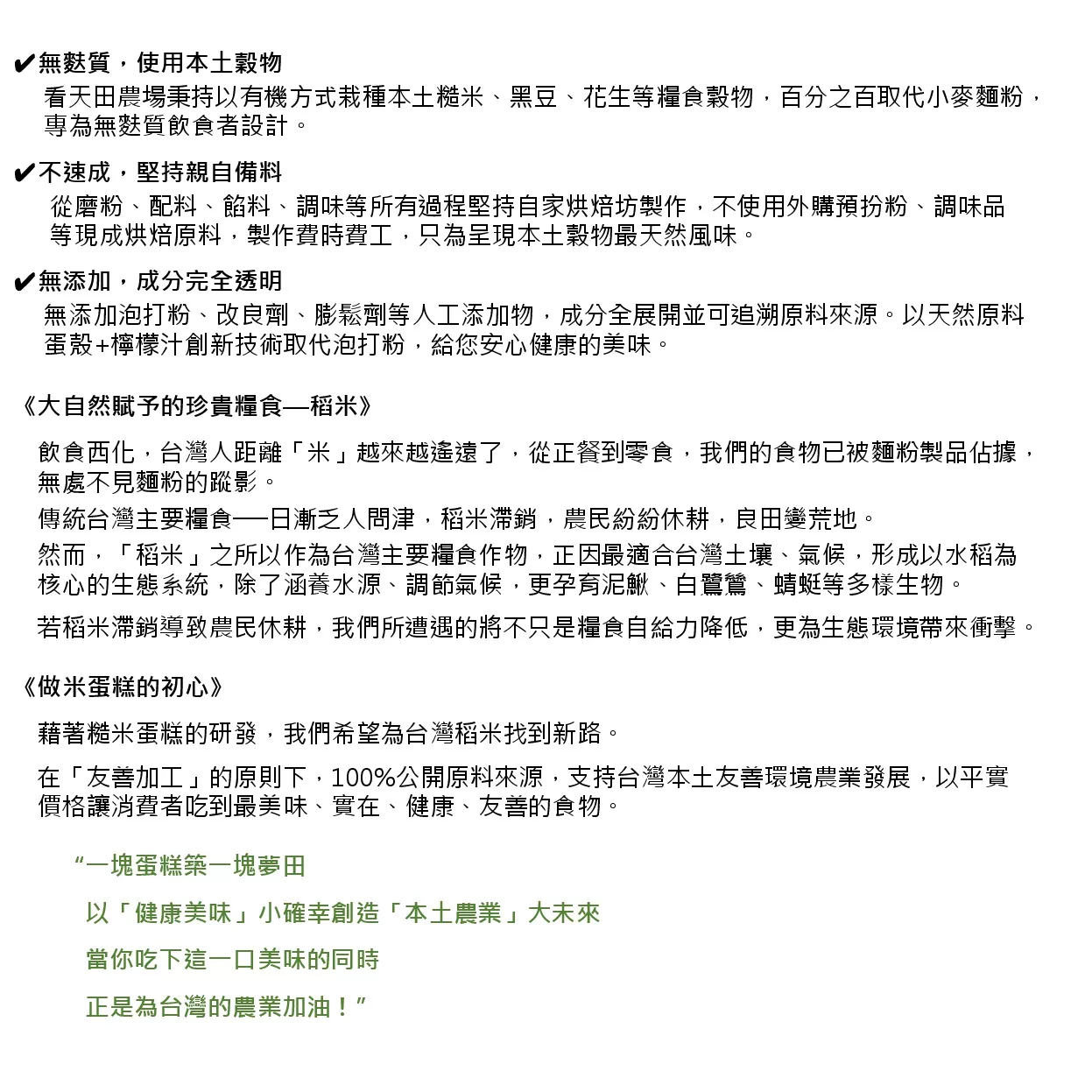 採用看天田農場有機糙米、黑豆磨粉取代麵粉,