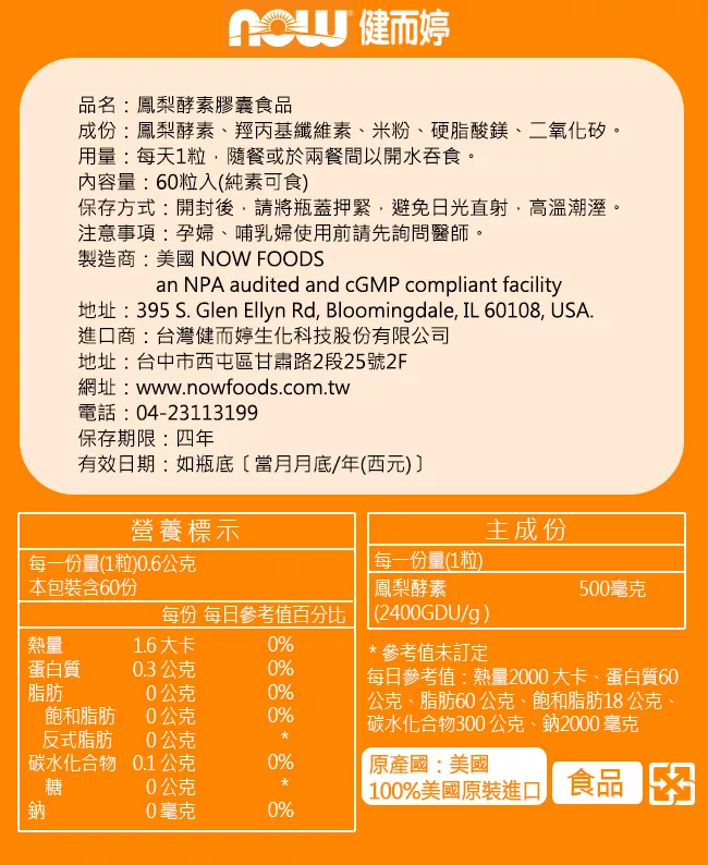 NOW健而婷─鳳梨酵素膠囊(60顆-瓶)![]()